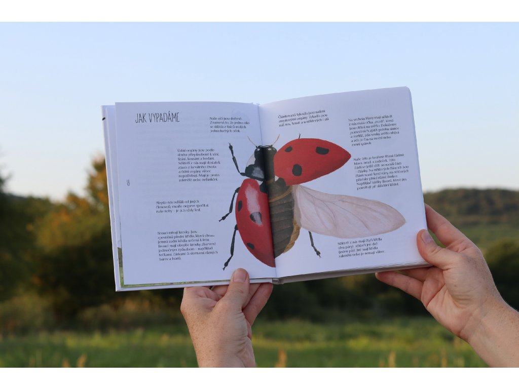 Kniha JSME HMYZ je atlas, který dává hmyzu hlas. Je napsaná v první osobě, a právě to ji činí výjimečnou. Čtenář má pocit, jako by k němu promlouval sám malý tvor a otevíral mu dveře do svého světa.